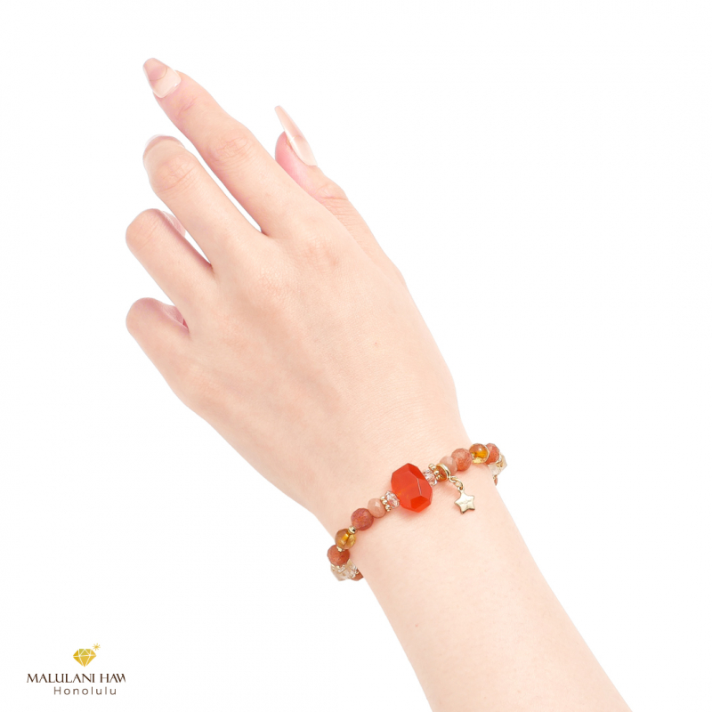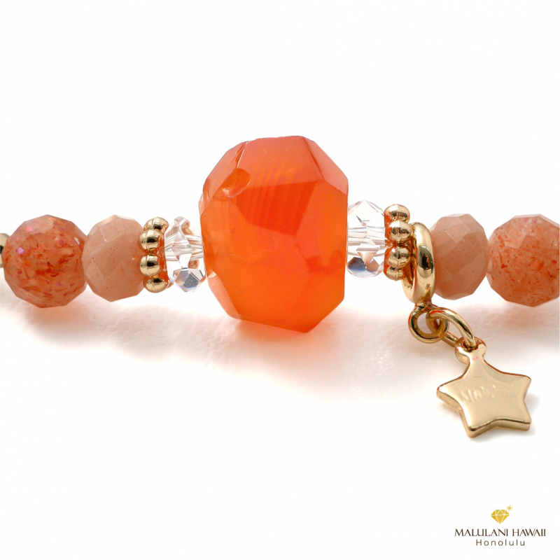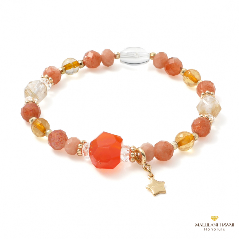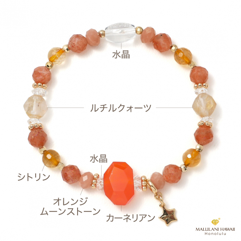 2026年のラッキーカラーのひとつオレンジ色に、輝く太陽のように大きな「カーネリアン」を中心にした2026年の総合運をあげるブレスレットです。