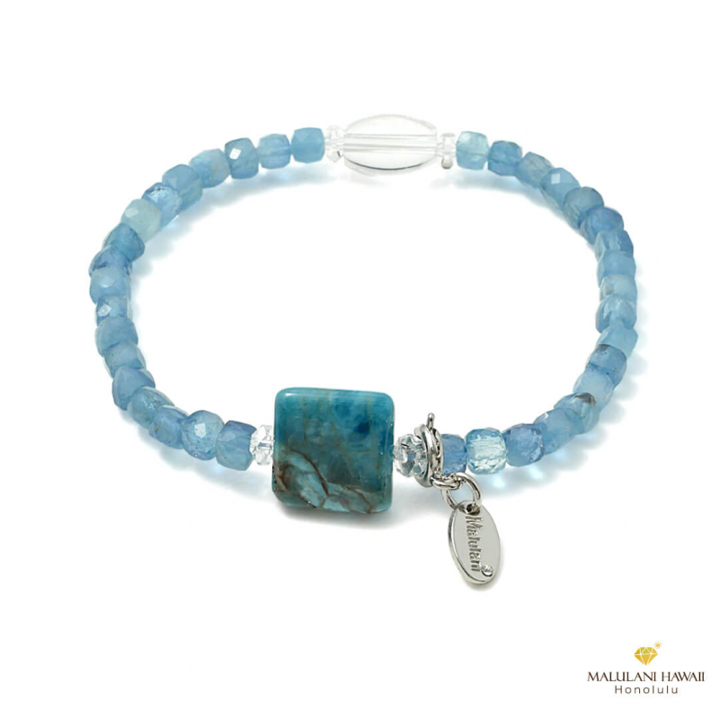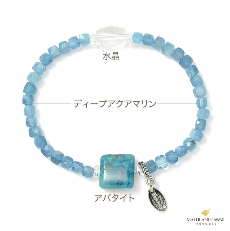穏やかなブルーやグリーンを帯びたアパタイトは、心の迷いを鎮め、意志と感情をひとつに調和させてくれるストーンです。