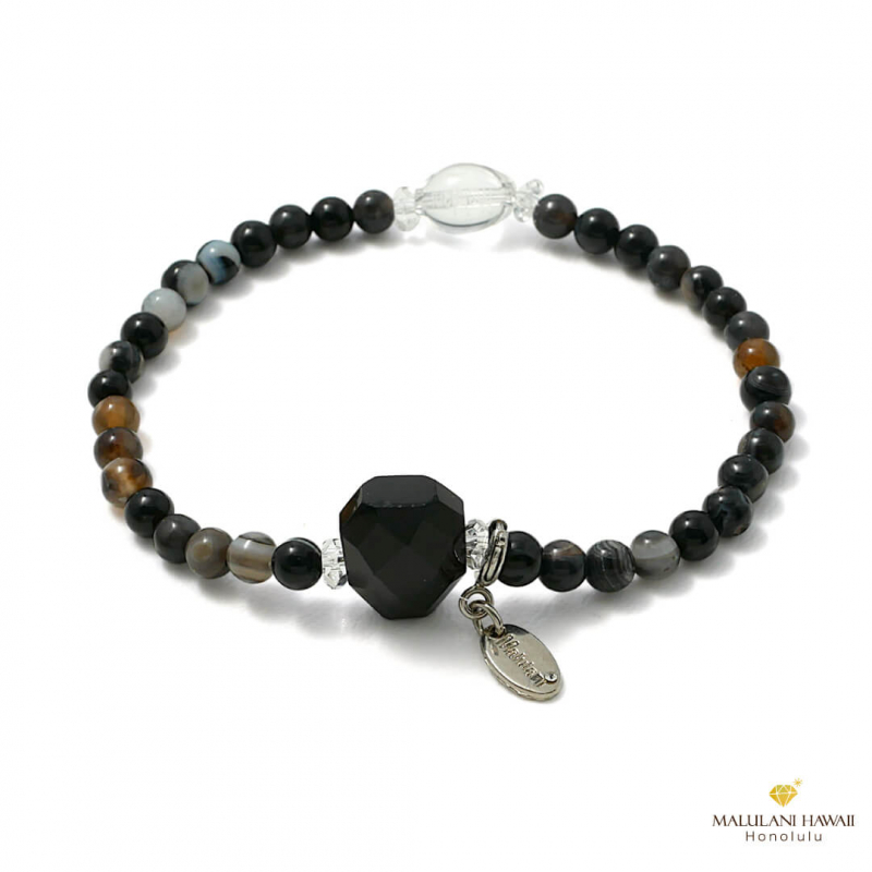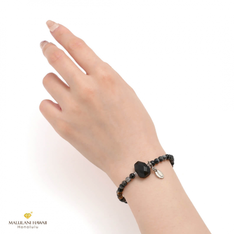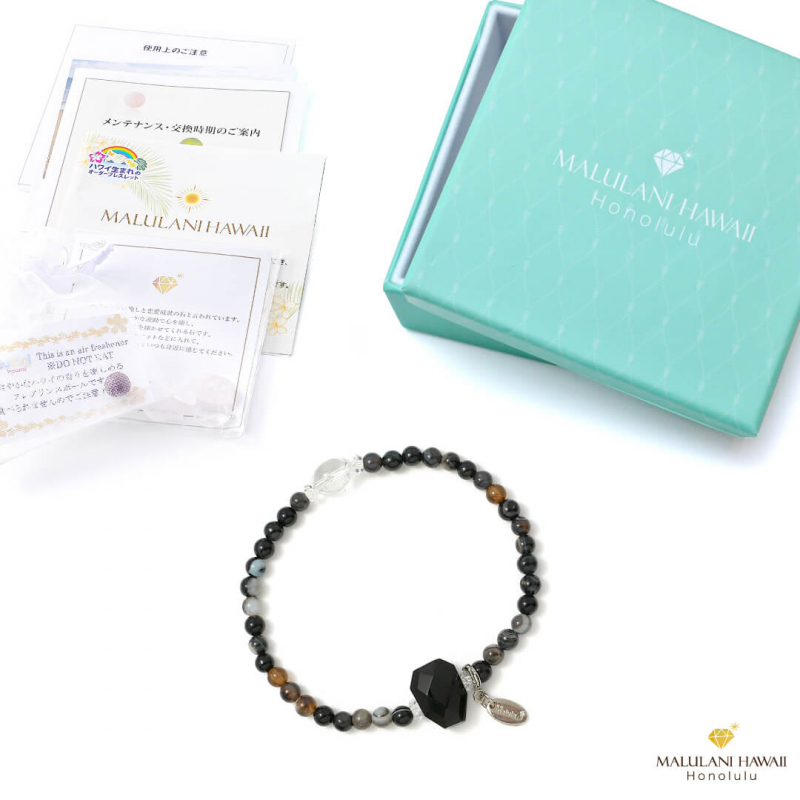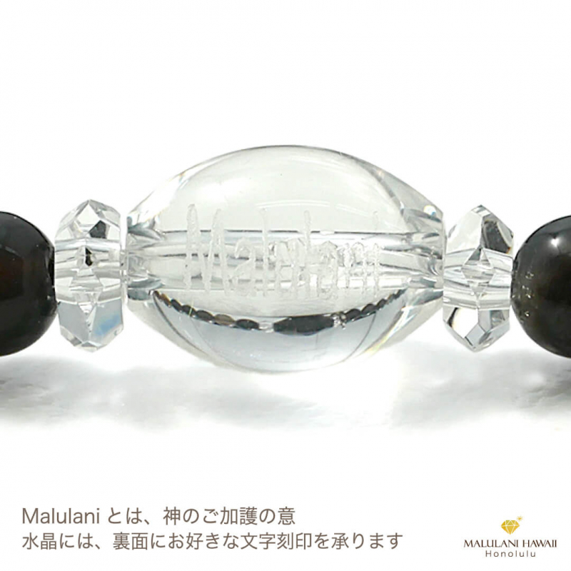 水晶とオリジナルチャームには、ハワイ語で「神に護られた」という意味を持つ「malulani」と刻印。