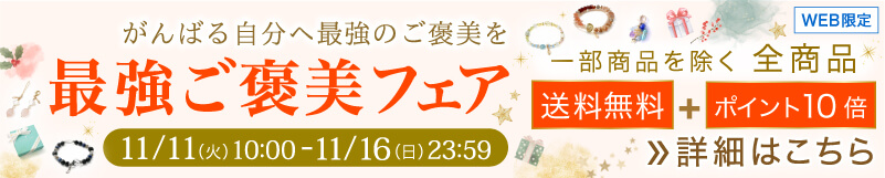 11月11日(火)10:00 〜 11月16日(日)23:59限定、オンラインショップで全商品がポイント10倍+送料無料のキャンペーンを実施いたします。