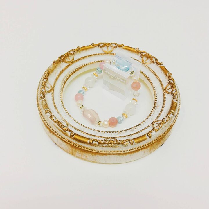 ②ピンクとブルーのグラデーションが愛らしさを引き立てる女性のお守りブレスレット