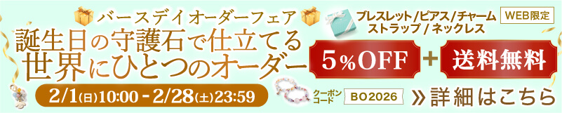 ◆オンラインショップ限定、2月1日から2月28日まで、バースデイオーダーブレスが5%OFF + 送料無料となるキャンペーンを実施いたします。
