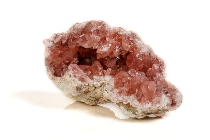 アメジストが生成される過程で、鉄分が特定の条件で含まれることにより、鮮やかなピンク色に発色すると言われています。