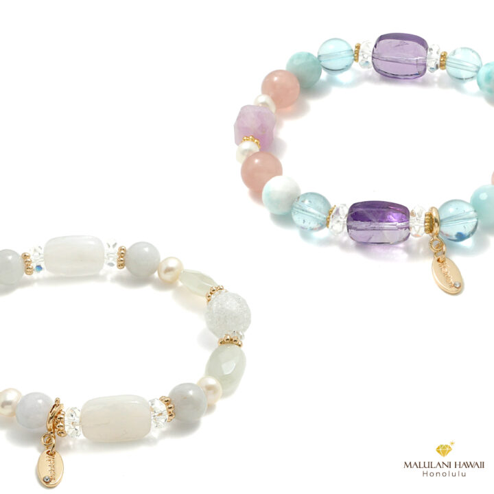 凛とした透明感を感じさせる天然石をエレガントに紡いだ2種類のブレスレット