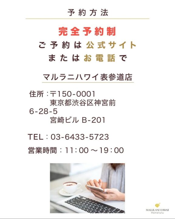- 予約方法:完全予約制です。公式サイトまたはお電話にてご予約ください